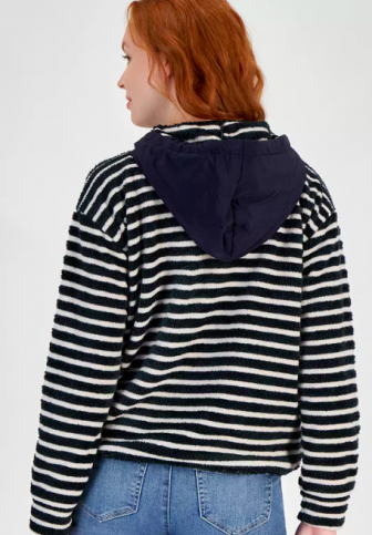 Nautica Jeans Women's Striped Hooded Zip-Up Sweatshirt
