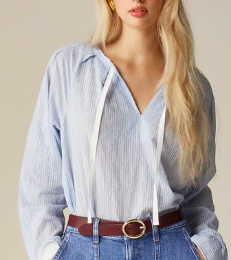 J CREW Tie-neck top in striped crinkle cotton