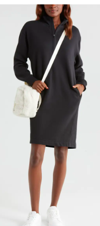 Cloud Fleece Long Sleeve Quarter Zip Dress Zella