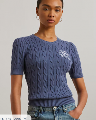 ralph lauren Cable-Knit Cotton Short-Sleeve Sweater