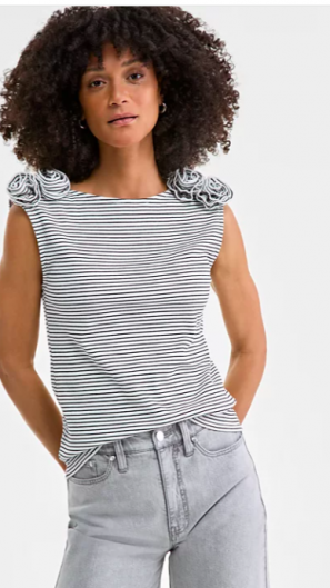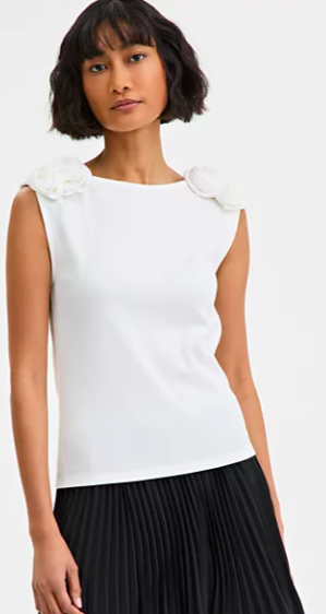 On 34th Women's Ribbed Rosette Shoulder Tank Top,