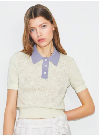 8/20止 Tory Burch COTTON POINTELLE LOGO POLO