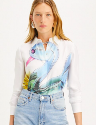 T7/7止 ory Burch LUCKY DUCK SILK SHIRT