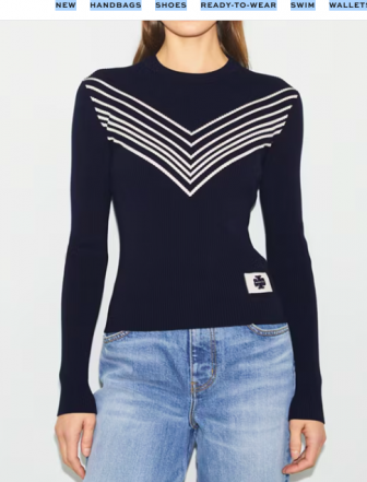 T7/7止 ory Burch CHEVRON VISCOSE SWEATER 藍8599