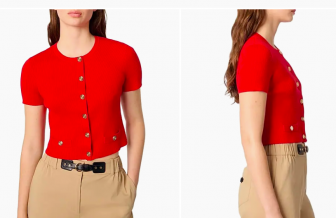 Maje Cropped Short Sleeve Cardigan with Gold Buttons