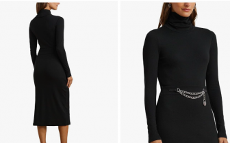 Ralph Lauren Chain-Trim Rib-Knit Turtleneck Dress