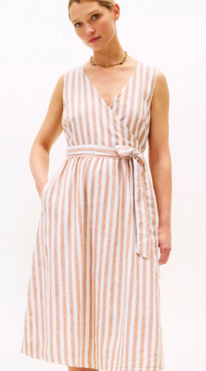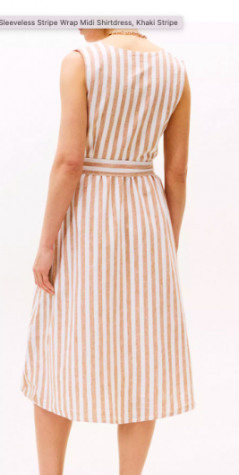 Tommy Hilfiger Sleeveless Stripe Wrap Midi Shirtdress