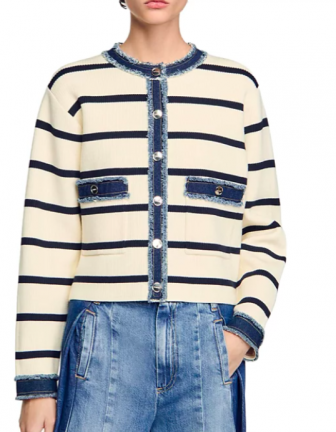 Sandro Cardigan with Denim Detail