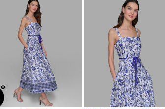 KARL LAGERFELD PARIS PRINTED MAXI DRESS WITH BELT