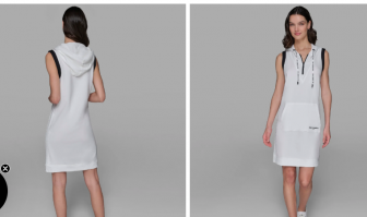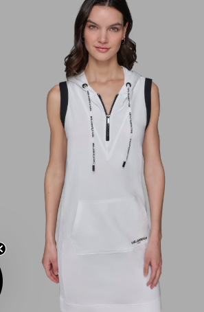 KARL LAGERFELD PARIS SLEEVELESS LOGO MESH HOODIE DRESS