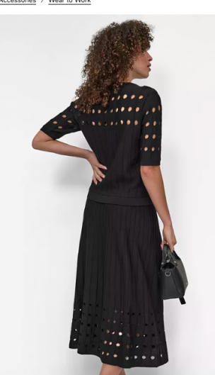 DKNY Women's Crepe Cutout Sweater & Midi Sweater Sk