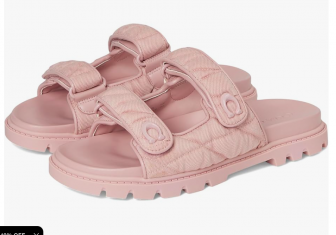 COACH Sculpted C Leather Double Band Sandals 粉7999