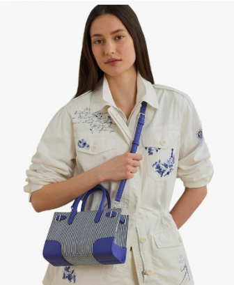Ralph Lauren Striped Canvas Small Devyn Tote Bag