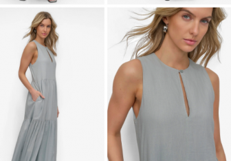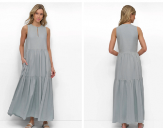 DKNY LINEN SLEEVELESS TIERED MAXI