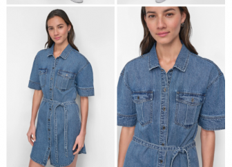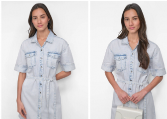 DKNY BELTED DENIM MINI SHIRT DRESS