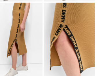 DKNY LOGO RIB-KNIT MIDI SKIRT