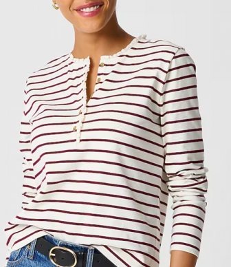J CREW Striped ruffle-collar henley