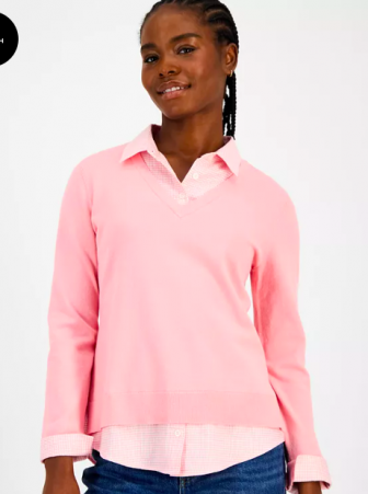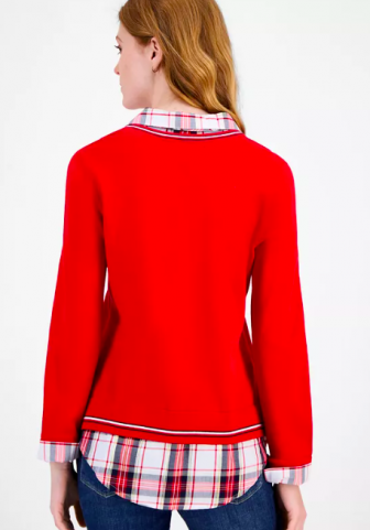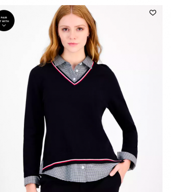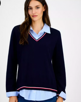 Tommy Hilfiger Women's Cotton Twofer V-Neck Long-Sleeve