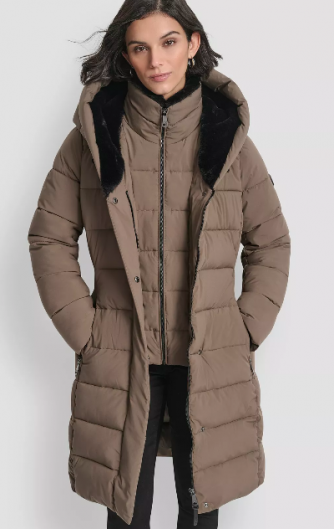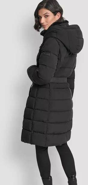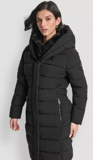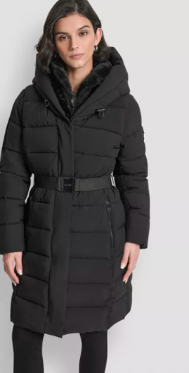 DKNY Women's Belted Asymmetrical Zip Front Puffer Coat