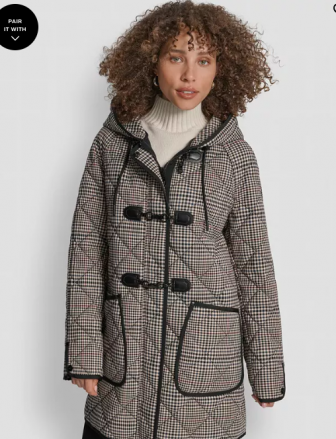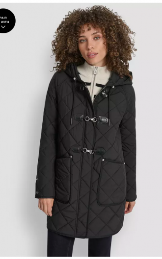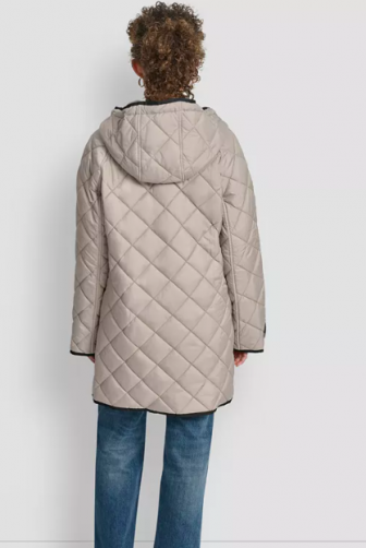 DKNY Women's Hooded Toggle Quilted Coat