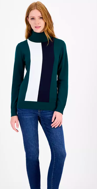 Tommy Hilfiger Women's Cotton Vertical Stripe Turtlenec