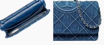 Tory Burch Fleming Denim Chain Wallet