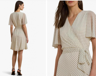 Ralph Lauren Polka Dot Georgette Surplice Dress