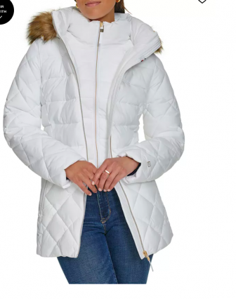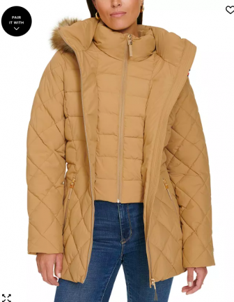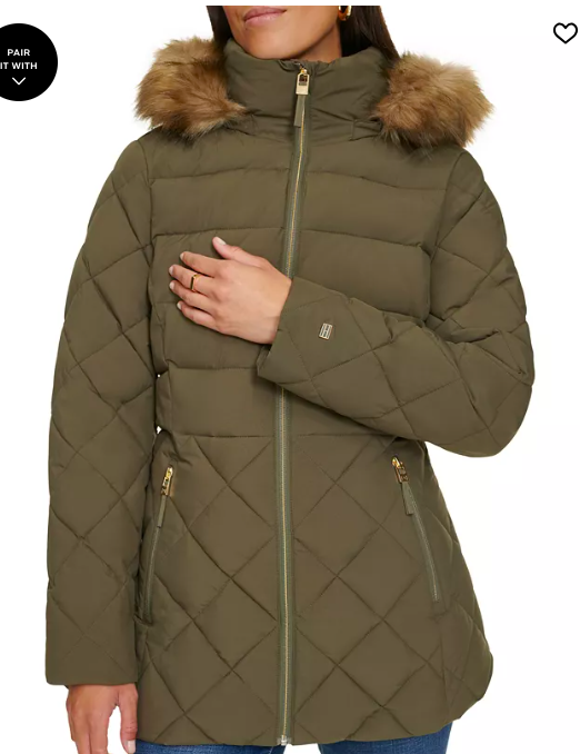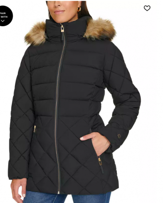 Tommy Hilfiger Women's Bibbed Faux-Fur-Trim Hooded Puff