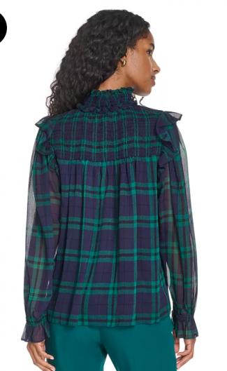 Tommy Hilfiger Women's Plaid Peasant Mock Neck Top