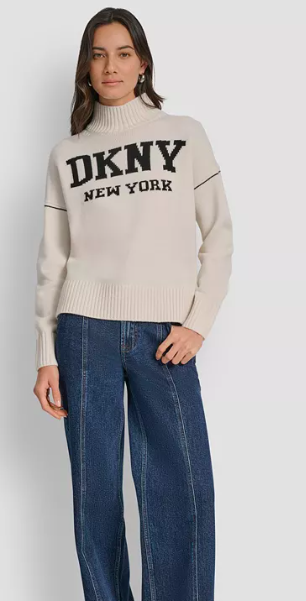 DKNY Jeans Women's Intarsia Logo Turtleneck Sweater