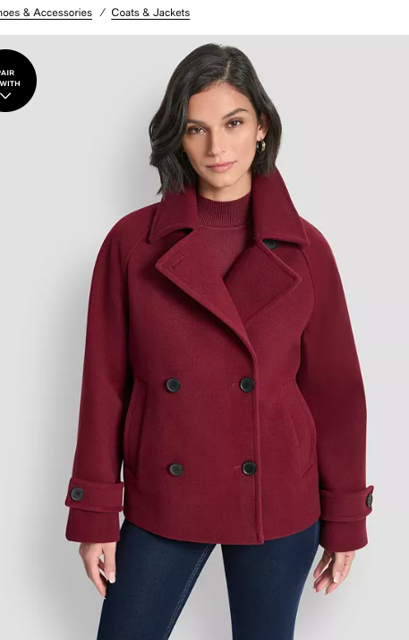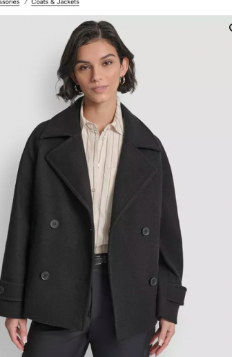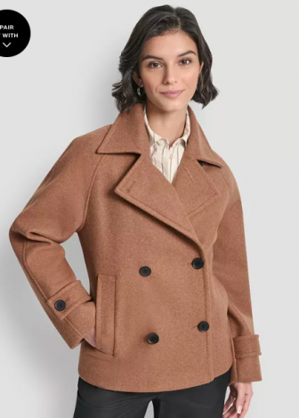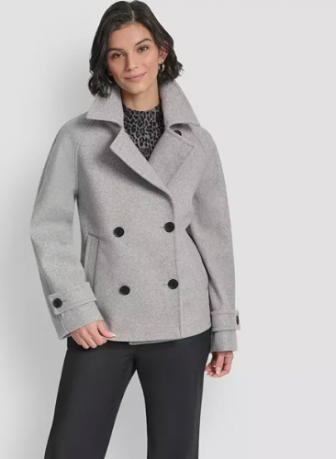 DKNY Women's Short Double Breasted Collared Coat