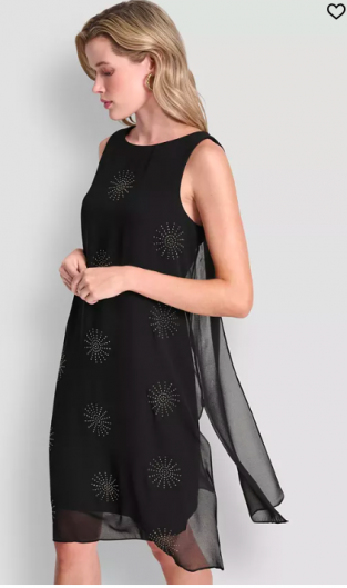 DKNY Women's Sleeveless Hotfix Chiffon Overlay Dress