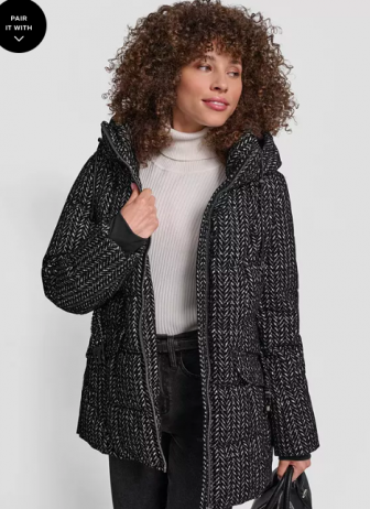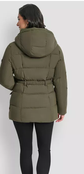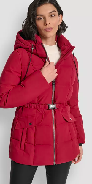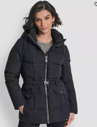DKNY Women's Belted Hooded Puffer Coat