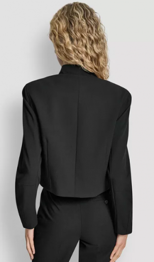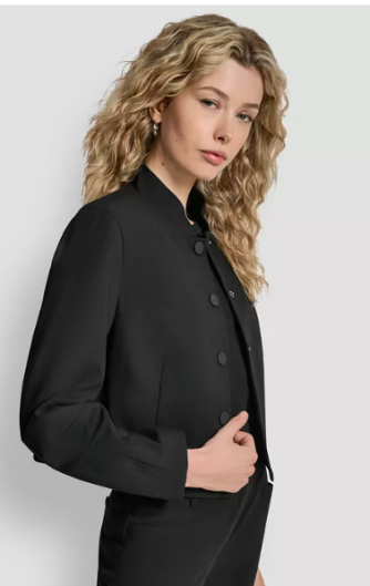 DKNY Women's Mandarin Collar Button Front Cropped Jacke
