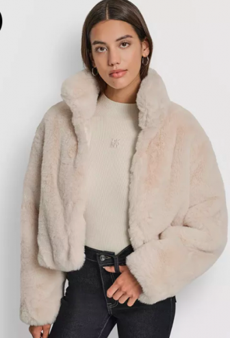 DKNY Jeans Women's Long-Sleeve Cropped Faux Fur Jacket
