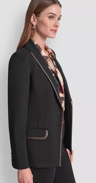 DKNY Petite 2-Button Notch Collar Ponte Jacket