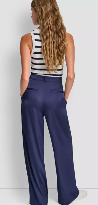 DKNY Jeans Women's High-Rise Pleated Wide Leg Trousers