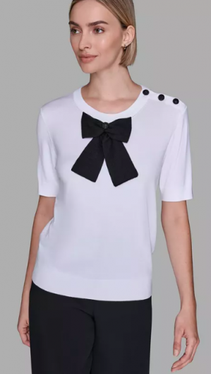 KARL LAGERFELD PARIS Women's Crewneck Big Bow Applique