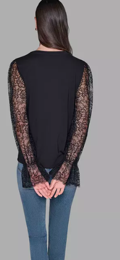 KARL LAGERFELD PARIS Women's Sheer Lace Blouse