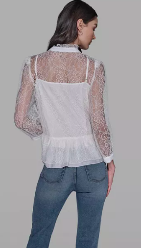 KARL LAGERFELD PARIS Women's Lace V-Neck Blouse