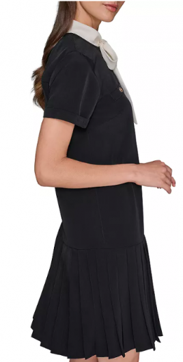 KARL LAGERFELD PARIS Bow Neck Pleated Skirt Dress