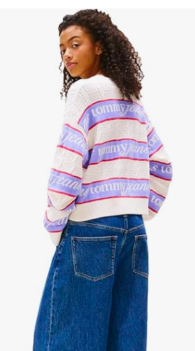 Tommy Jeans Womens Striped Pullover V-Neck Sweater with Logo