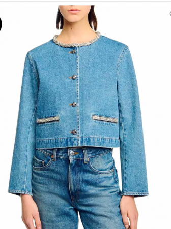 Sandro Rhinestone Denim Jacket