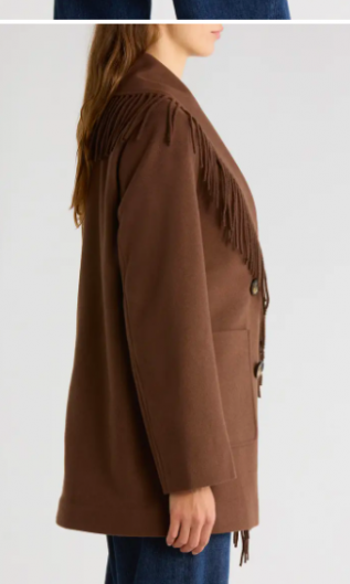 Fringe Shawl Collar Coat Sam Edelman
