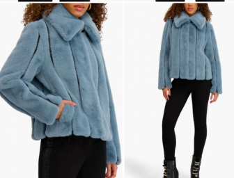 Vertical Seam Faux Fur Jacket KARL LAGERFELD PARIS
