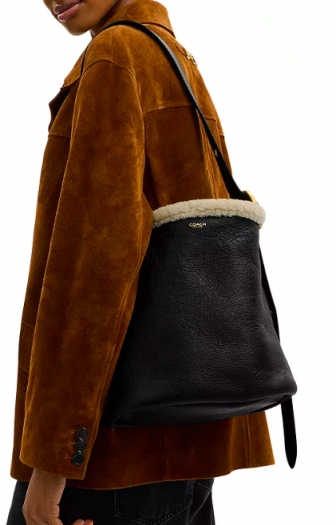 COACH Bleeker Leather & Shearling Bucket Bag