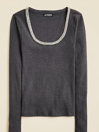 J CREW Perfect rib scoopneck T-shirt with embellishments