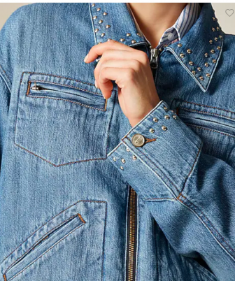 J CREW Cropped denim jacket with stud embellishments