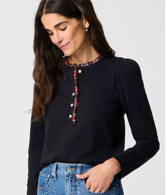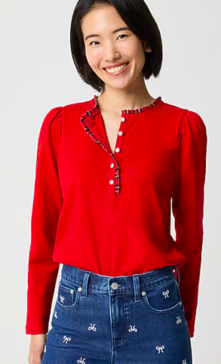 J CREW Long-sleeve tartan and jewels henley