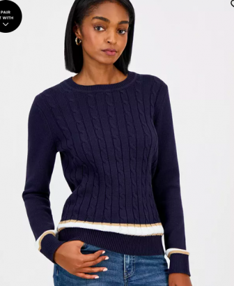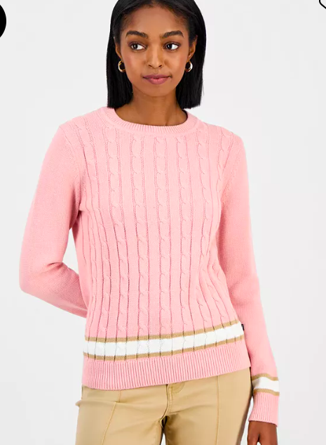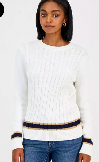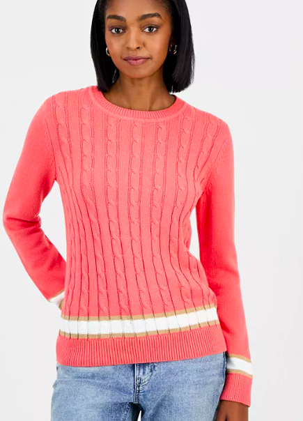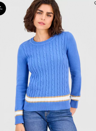 Nautica Jeans Women's Thick-Tipped Cable-Knit Crewneck